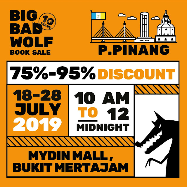 BUKIT MERTAJAM, 18 JULAI 2019 – Susulan kejayaan besar Jualan Buku Big Bad Wolf di Gurney Paragon pada tahun lalu, Jualan Buku Big Bad Wolf kembali lagi ke Pulau Pinang pada 18 hingga 28 Julai 2018, bertempat di Mydin Mall Bukit Mertajam❗ Warga Pulau Pinang diseru agar tidak melepaskan peluang untuk mengunjungi Jualan Buku tersebut yang akan dibuka dari pukul 10:00 pagi hingga 12:00 tengah malam selama 11 hari dan masuk adalah PERCUMA❗